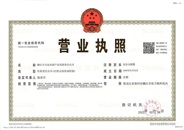 嫩江縣市萬達(dá)農(nóng)副產(chǎn)品有限責(zé)任公司座落在嫩江縣前衛(wèi)糧庫院內(nèi),是集辦公,收購及銷售一站式綜合性企業(yè)。公司現(xiàn)有固定員工13人,臨時(shí)員工20人。我公司先后與北京三河匯福糧油,云南云天化,益海嘉里集團(tuán)。